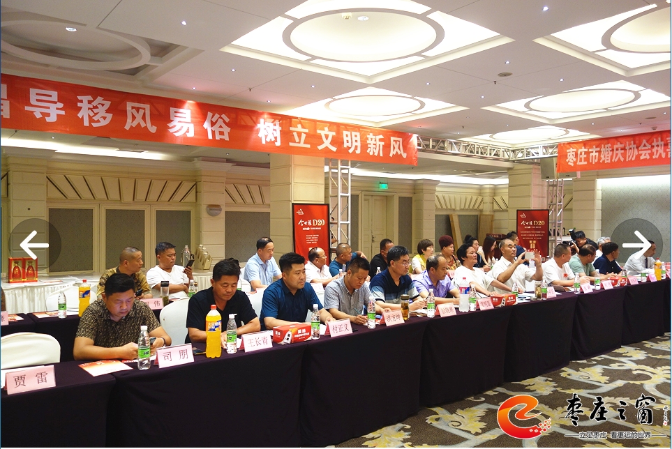 為貫徹落實上級部門提出的倡導(dǎo)文明、喜事新辦,移風(fēng)易俗,減少陋習(xí),新事簡辦的工作方針,建立健全婚禮執(zhí)喜的有序化,更好的構(gòu)建和諧社會,為“工業(yè)強(qiáng)市、產(chǎn)業(yè)興市”做貢獻(xiàn)。7月12日下午,由棗莊市婚慶慶典協(xié)會、江蘇今世緣酒業(yè)銷售有限公司主辦的棗莊市婚慶慶典協(xié)會執(zhí)喜專業(yè)委員會成立一周年慶典暨婚慶產(chǎn)業(yè)鏈融合發(fā)展座談會在舜和棗莊大酒店舉辦,執(zhí)喜專委會成員、專委會顧問團(tuán)成員、棗莊婚慶界、餐飲界、商業(yè)界代表60余人參加活動。
