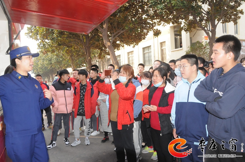 培訓開始,朱干事通過一個個真實的案例,結合近年來發(fā)生的典型火災事故,運用圖片及視頻資料,深入淺出地講解了消防安全工作的重要性、火險的識別、初期火災處置、滅火設備的使用方法等消防常識;隨后帶領師生們參觀了消防車,簡要講解了消防車輛的配置、特點,以及各類車載器材裝備的名稱、性能、用途,并針對現(xiàn)場學生們提出的各類問題一一解答。